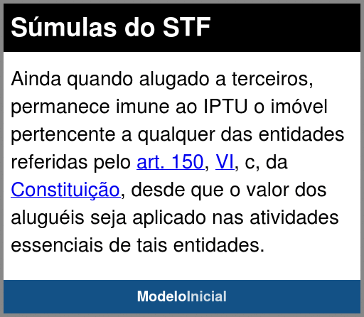 Ainda quando alugado a terceiros, permanece imune ao IPTU o imóvel pertencente a qualquer das entidades referidas pelo art. 150, VI, c, da Constituição, desde que o valor dos aluguéis seja aplicado nas atividades essenciais de tais entidades.