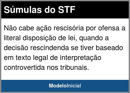 Não cabe ação rescisória por ofensa a literal disposição de lei, quando a decisão rescindenda se tiver baseado em texto legal de interpretação controvertida nos tribunais.
