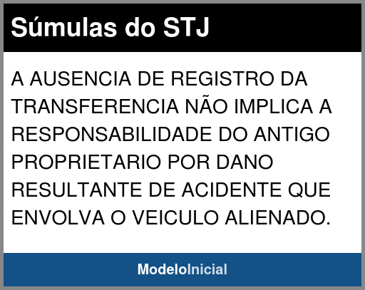 A AUSENCIA DE REGISTRO DA TRANSFERENCIA NÃO IMPLICA A RESPONSABILIDADE DO ANTIGO PROPRIETARIO POR DANO RESULTANTE DE ACIDENTE QUE ENVOLVA O VEICULO ALIENADO.