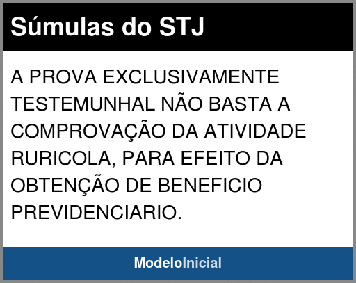 ATENÇÃO: Apesar da argumentação referida, atentar à Súmula do STJ que dispõe que a prova exclusivamente testemunhal não basta a comprovação da atividade rurícola, para efeito da obtenção de benefício previdenciário. (Súmula 149 STJ)