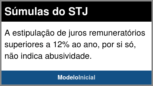 A estipulação de juros remuneratórios superiores a 12% ao ano, por si só, não indica abusividade.