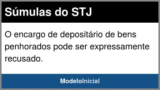 Dispõe a Súmula nº 319 do Superior Tribunal de Justiça: O encargo de depositário de bens penhorados pode ser expressamente recusado.
