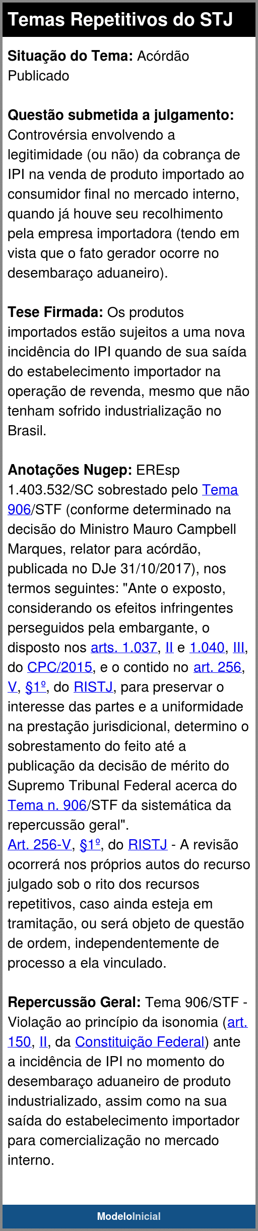 Tema 906/RG); STJ, Tema 912 (recursos repetitivos).
