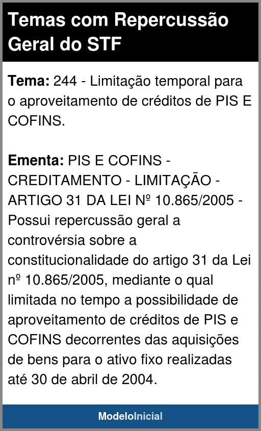 Tema 244: Limitação temporal para o aproveitamento de créditos de PIS E COFINS.