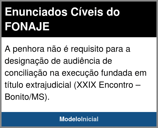 A penhora não é requisito para a designação de audiência de conciliação na execução fundada em título extrajudicial (XXIX Encontro – Bonito/MS).
