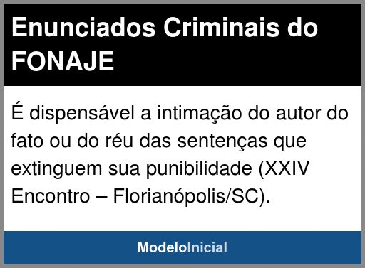 É dispensável a intimação do autor do fato ou do réu das sentenças que extinguem sua punibilidade (XXIV Encontro – Florianópolis/SC).