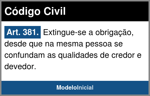 Art. 381. Extingue-se a obrigação, desde que na mesma pessoa se confundam as qualidades de credor e devedor.