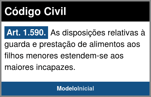 Art. 1.590. As disposições relativas à guarda e prestação de alimentos aos filhos menores estendem-se aos maiores incapazes.