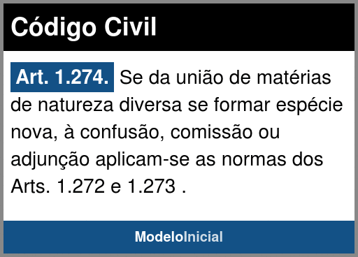 Art. 1.274. Se da união de matérias de natureza diversa se formar espécie nova, à confusão, comissão ou adjunção aplicam-se as normas dos Arts. 1.272 e 1.273 .