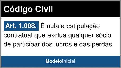 Art. 1.008. É nula a estipulação contratual que exclua qualquer sócio de participar dos lucros e das perdas.