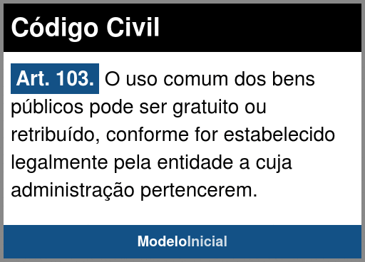 Art. 103. O uso comum dos bens públicos pode ser gratuito ou retribuído, conforme for estabelecido legalmente pela entidade a cuja administração pertencerem.