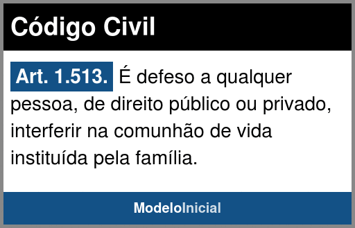 Art. 1.513. É defeso a qualquer pessoa, de direito público ou privado, interferir na comunhão de vida instituída pela família.