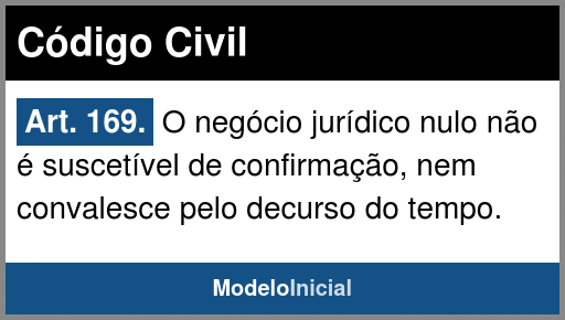 Art. 169. O negócio jurídico nulo não é suscetível de confirmação, nem convalesce pelo decurso do tempo.