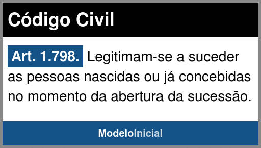Art. 1.798. Legitimam-se a suceder as pessoas nascidas ou já concebidas no momento da abertura da sucessão.