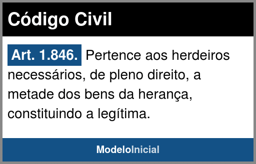 Art. 1.846. Pertence aos herdeiros necessários, de pleno direito, a metade dos bens da herança, constituindo a legítima.