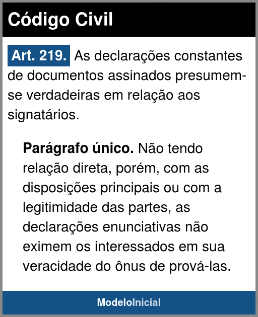 Art. 219. As declarações constantes de documentos assinados presumem-se verdadeiras em relação aos signatários.