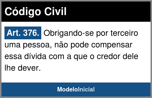Art. 376. Obrigando-se por terceiro uma pessoa, não pode compensar essa dívida com a que o credor dele lhe dever.