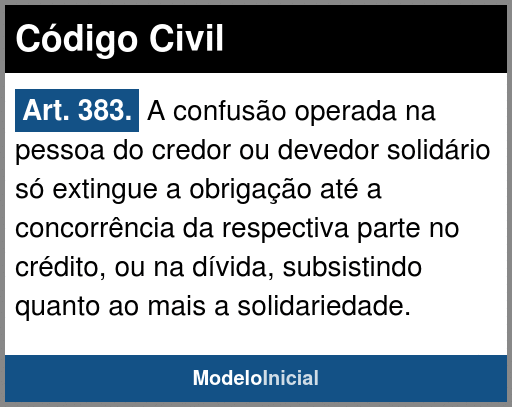 Art. 383. A confusão operada na pessoa do credor ou devedor solidário só extingue a obrigação até a concorrência da respectiva parte no crédito, ou na dívida, subsistindo quanto ao mais a solidariedade.