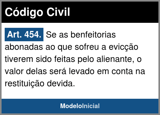 Art. 454. Se as benfeitorias abonadas ao que sofreu a evicção tiverem sido feitas pelo alienante, o valor delas será levado em conta na restituição devida.
