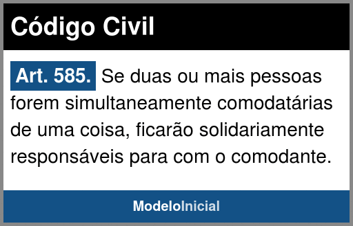 Art. 585. Se duas ou mais pessoas forem simultaneamente comodatárias de uma coisa, ficarão solidariamente responsáveis para com o comodante.