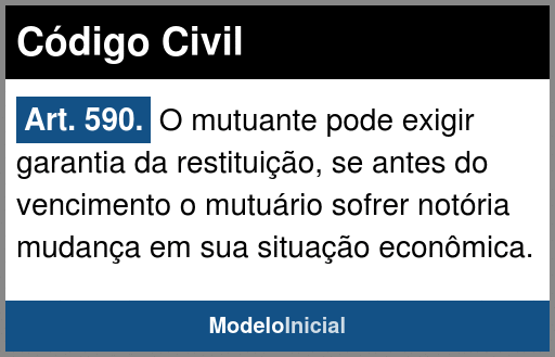 Art. 590. O mutuante pode exigir garantia da restituição, se antes do vencimento o mutuário sofrer notória mudança em sua situação econômica.