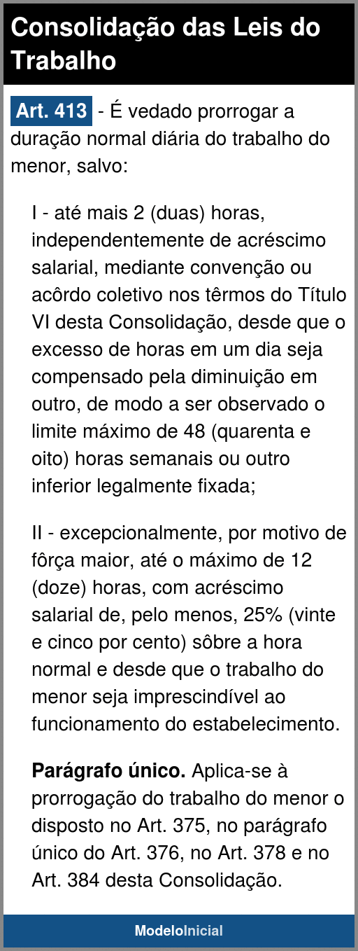 Parágrafo único. Aplica-se à prorrogação do trabalho do menor o disposto no Art. 375, no parágrafo único do Art. 376, no Art. 378 e no Art. 384 desta Consolidação.