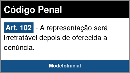 Art. 102 - A representação será irretratável depois de oferecida a denúncia.
