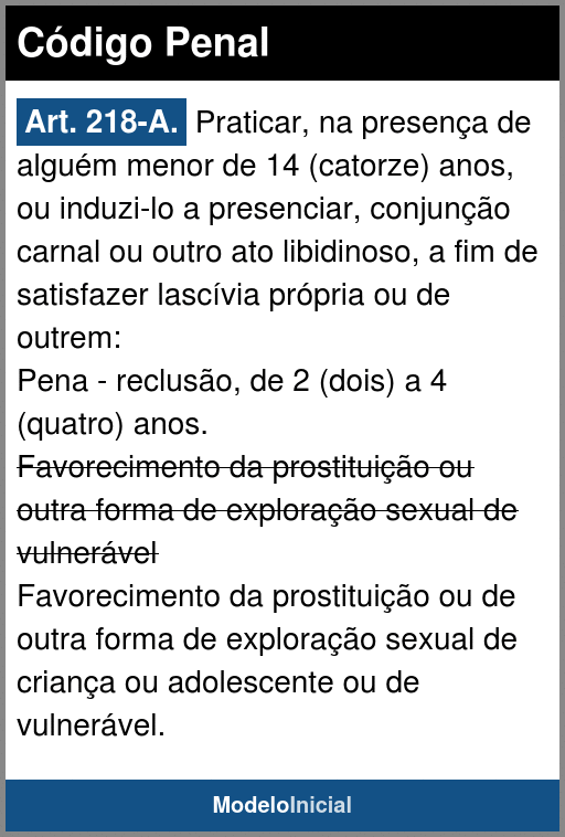 Arts. 218-B ... 218-C ocultos » exibir Artigos