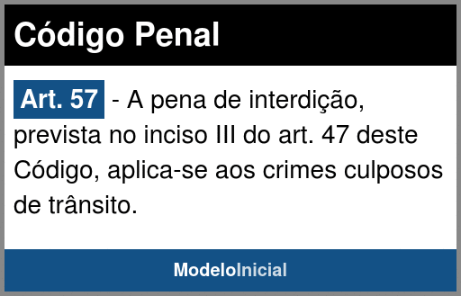 Art. 57 - A pena de interdição, prevista no inciso III do art. 47 deste Código, aplica-se aos crimes culposos de trânsito.