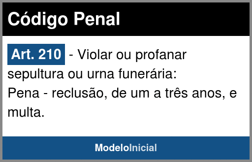 Art. 210 - Violar ou profanar sepultura ou urna funerária:Pena - reclusão, de um a três anos, e multa.