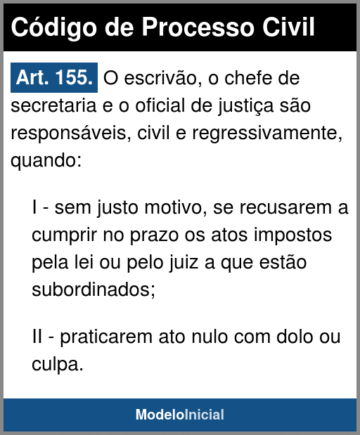 Art. 155. O escrivão, o chefe de secretaria e o oficial de justiça são responsáveis, civil e regressivamente, quando: