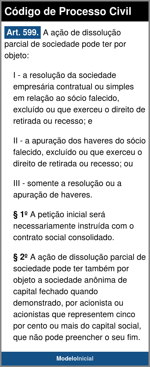 II - a apuração dos haveres do sócio falecido, excluído ou que exerceu o direito de retirada ou recesso; ou