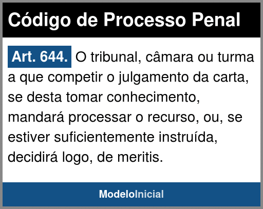Art. 644. O tribunal, câmara ou turma a que competir o julgamento da carta, se desta tomar conhecimento, mandará processar o recurso, ou, se estiver suficientemente instruída, decidirá logo, de meritis.