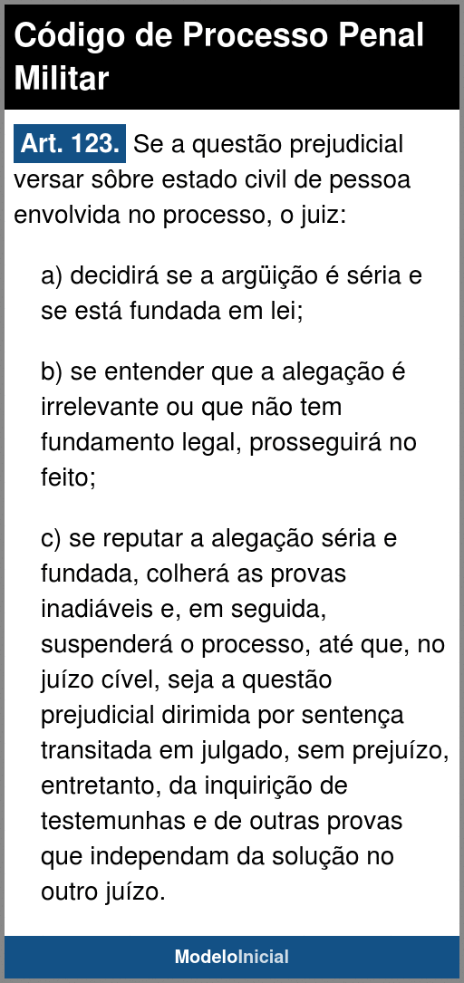 Art. 123. Se a questão prejudicial versar sôbre estado civil de pessoa envolvida no processo, o juiz: