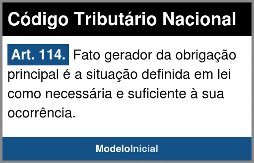 Art. 114. Fato gerador da obrigação principal é a situação definida em lei como necessária e suficiente à sua ocorrência.