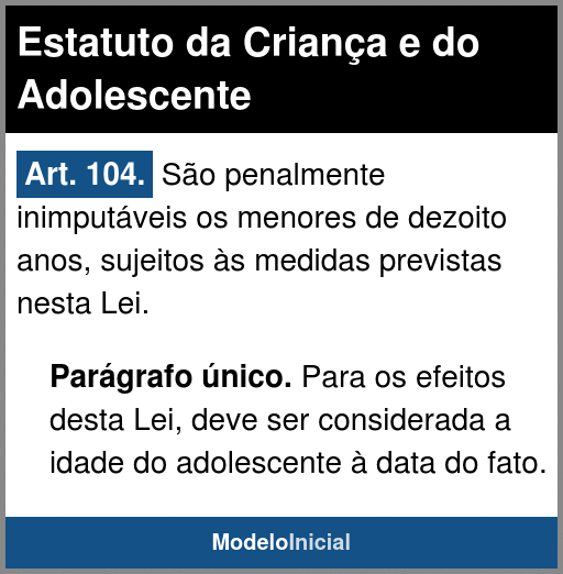 Art. 104. São penalmente inimputáveis os menores de dezoito anos, sujeitos às medidas previstas nesta Lei.