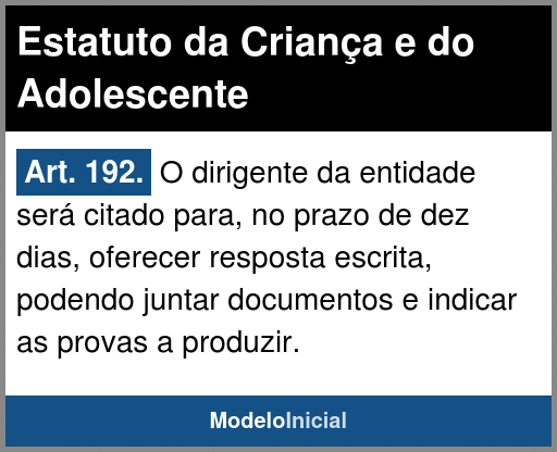 Art. 192. O dirigente da entidade será citado para, no prazo de dez dias, oferecer resposta escrita, podendo juntar documentos e indicar as provas a produzir.
