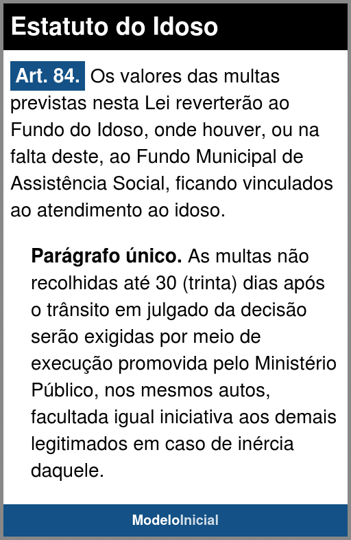 Art. 84. Os valores das multas previstas nesta Lei reverterão ao Fundo da Pessoa Idosa, onde houver, ou na falta deste, ao Fundo Municipal de Assistência Social, ficando vinculados ao atendimento à pessoa idosa.