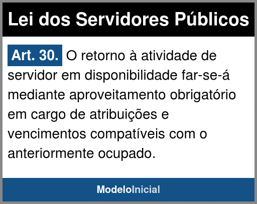 Art. 30. O retorno à atividade de servidor em disponibilidade far-se-á mediante aproveitamento obrigatório em cargo de atribuições e vencimentos compatíveis com o anteriormente ocupado.