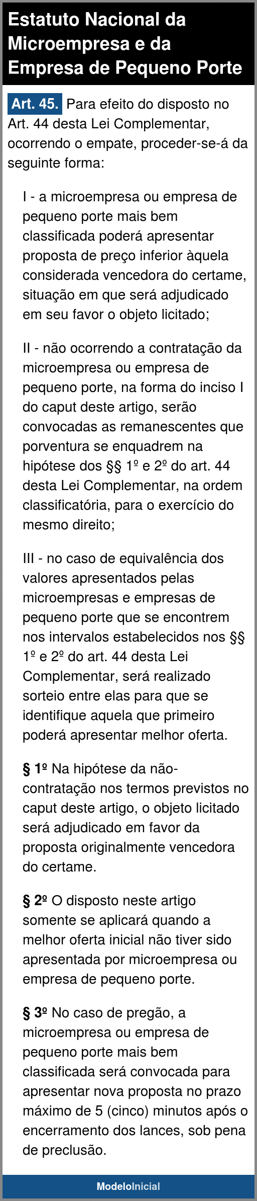 Art. 45. Para efeito do disposto no Art. 44 desta Lei Complementar, ocorrendo o empate, proceder-se-á da seguinte forma: (Vide Lei nº 14.133, de 2021